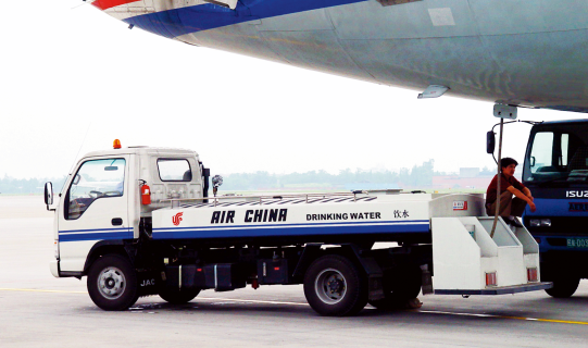 該類設(shè)備是通過(guò)車載裝置,為飛機(jī)提供清潔生活用水的自行式機(jī)場(chǎng)地面保障設(shè)備。該設(shè)備由汽車底盤(pán)、水箱總成、尾部框架總成、供水系統(tǒng)、液壓系統(tǒng)和電氣控制系統(tǒng)組成。