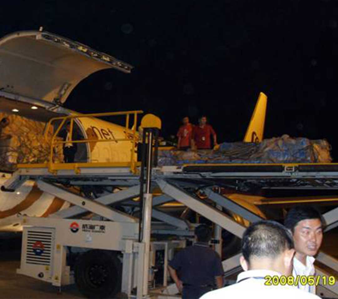 2008年5月16日,汶川地震后公司平臺車在綿陽機場作業(yè)